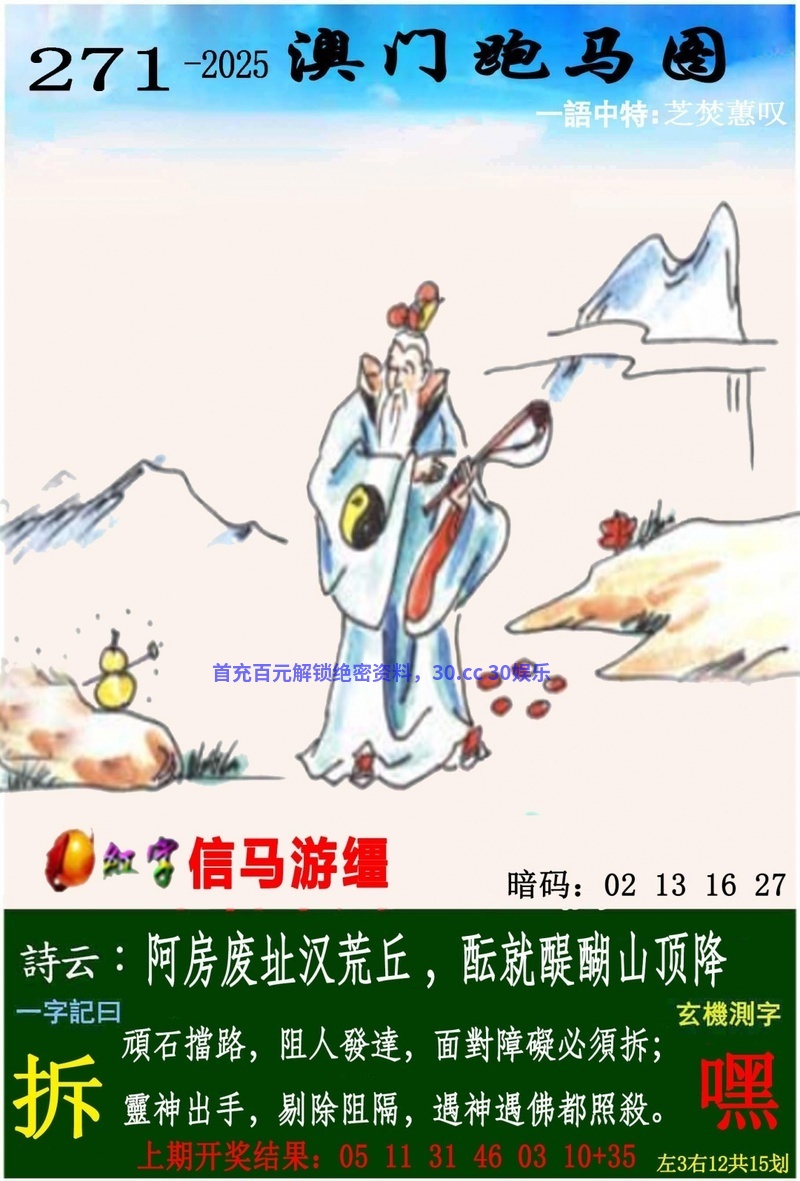 传真271期 今期有防四五开,二八其中选一码。 蓝蓝绿绿蓝爲主,有道高人来指点。 二五相合一七开,龙吟虎啸一时发。 马龙四头三来开,一年四季穿棉衣。 怀璧其罪 解:今期有防四五开,解大数特码25-49,道高人来指点,解吉美生肖兔龙蛇马羊鸡。 拐特生肖:猪羊蛇牛鼠兔龙狗虎 |